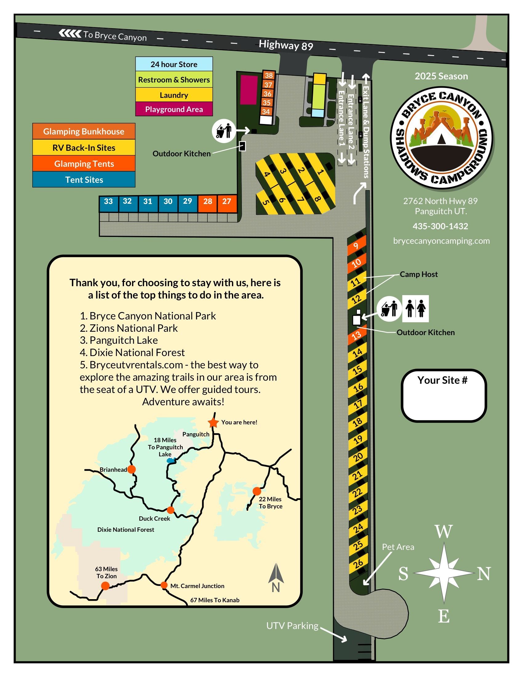 Explore the beauty of Bryce Canyon Shadows Campground and its surroundings through our gallery page. Browse photos and videos capturing the stunning landscapes of Panguitch and Bryce Canyon, showcasing the serene and vibrant atmosphere that makes our campground a memorable place for our visitors.